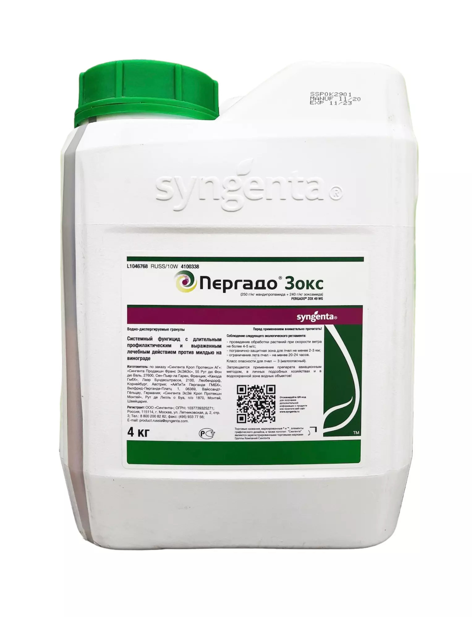 Надежная защита винограда от милдью за счет синергизма действующих веществ и пособности подавлять развитие и распространение спор; ПЕРГАДО ЗОКС обладает отличной дождеустойчивостью; Быстрое проникновение в растение; Активность при низких температурах; Технология LOK + FLO (блокирует и побеждает) гарантирует быструю фиксацию ПЕРГАДО ЗОКС на опушенных листьях и в восковом слое ягод;