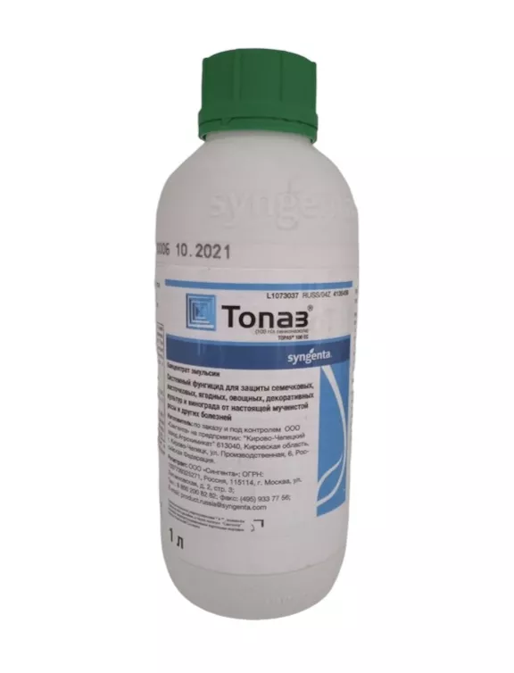 Топаз - системный фунгицид с профилактическим и лечебным действием, обладает высокой эффективностью против возбудителей мучнистой росы и др болезней.