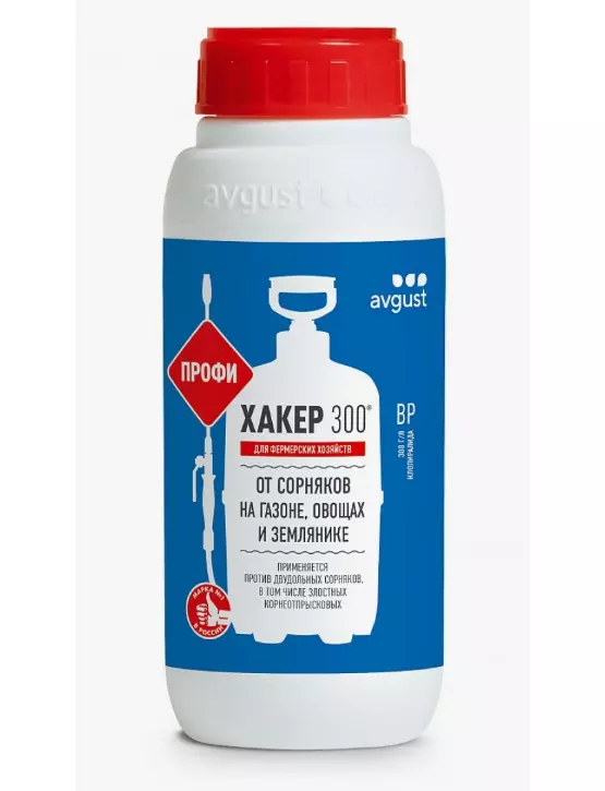 Уничтожает сорняки, не повреждая злаковые газонные травы, капусту и землянику.