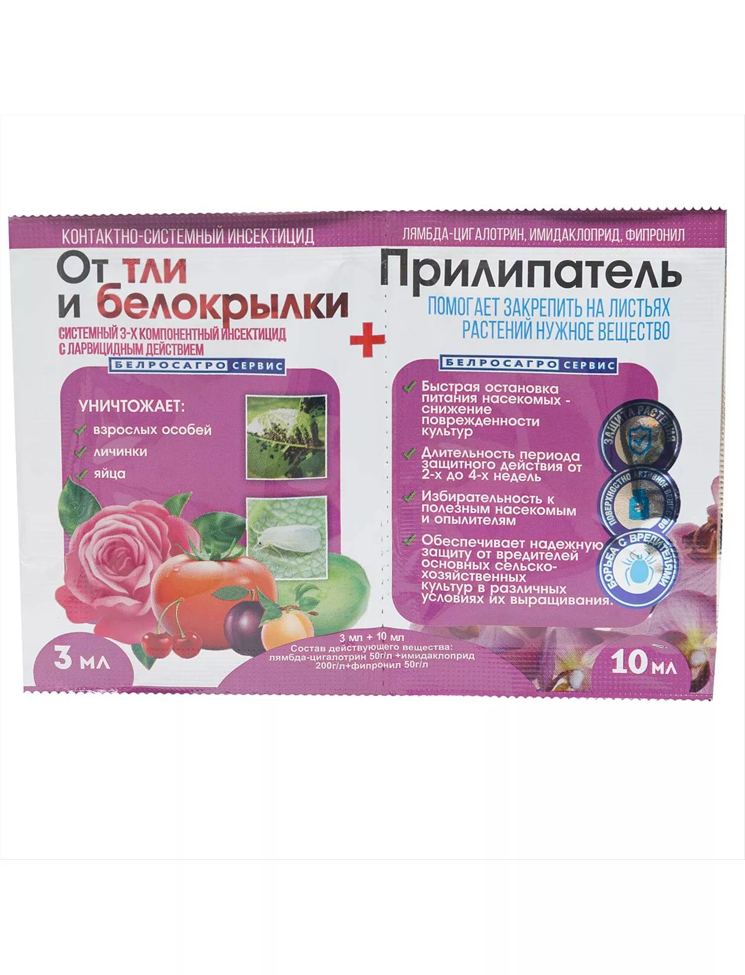 От тли и белокрылки+прилипатель - контактно-системный инсектицид для уничтожения взрослых особей, личинок и яиц тли и белокрылки.