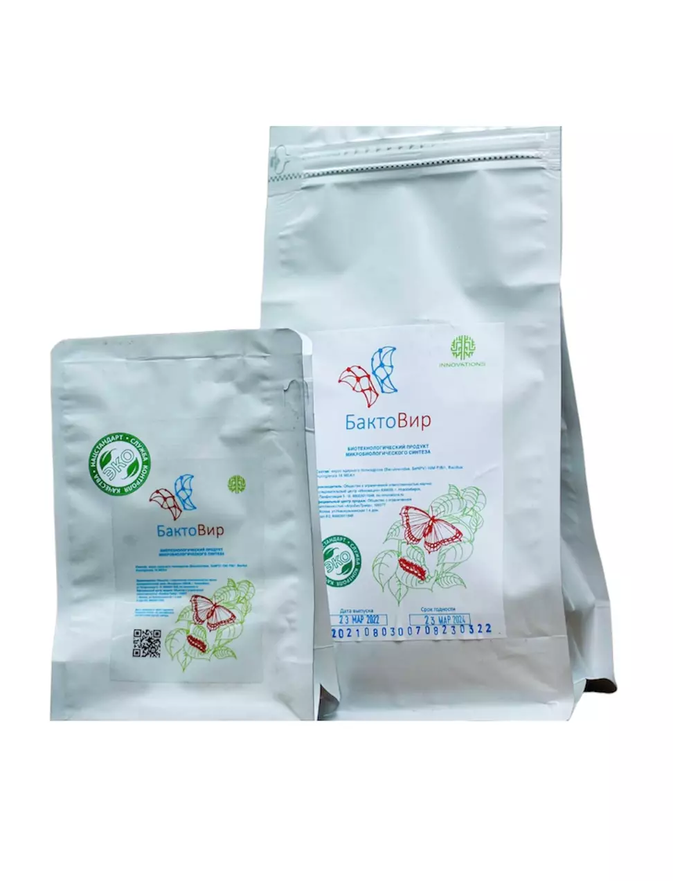 БактоВир — биологический препарат, состоящий из вируса и бактерии. Эффективно воздействует на гусениц чешуекрылых насекомых, личинок колорадского жука, белокрылок и тли. Биоразлагаем, не опасен для человека. Воздействует только на потенциальный объект.