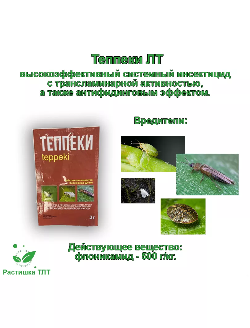 ЛТ Теппеки – это уникальное средство от избавления от вредителей на ваших растениях, средство эффективно благодаря своему составу и имеет широкий спектр в уничтожении насекомых-вредителей.