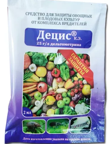 Средство “Децис” - это контактный инсектицид с кишечным действием. Оно имеет широкий диапазон воздействия, обеспечивая мгновенную защиту от жесткокрылых (насекомых), чешуекрылых (молей), равнокрылых (тли), большинства сетчатокрылых (златоглазки, осы), и двукрылых (муха).