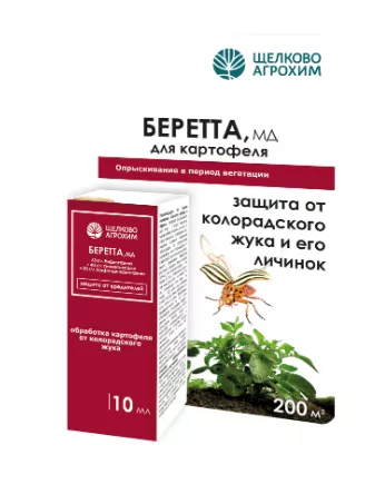 Беретта - высокоэффективный трехкомпонентный препарат в масляной формуляции для контроля особо вредоносных насекомых–вредителей на картофеле. Благодаря масляной формуляции улучшаются липофильные свойства д.в. Препарат отлично закрепляется на теле насекомого, усиливая контактное действие. Лучше удерживается на листьях растений и равномерно распределяется по поверхности, в полной мере проявляя трансламинарное действие и дольше сохраняя защитные свойства.
