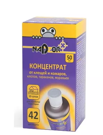 Профессиональное инсектицидное средство в форме концентрата, адаптированное для бытового применения. Предназначено для уничтожения тараканов, клопов, мух, блох, муравьев, комаров, крысиных клещей, а также лесных и таежных клещей – переносчиков возбудителей клещевого энцефалита и клещевого боррелиоза. Представляет из себя желтоватую полупрозрачную жидкость, которую перед применением необходимо развести водой согласно инструкции. Одного флакона хватит для разовой обработки территории до 10 соток. 42 дня защиты от насекомых действующее вещество - Циперметрин 25%